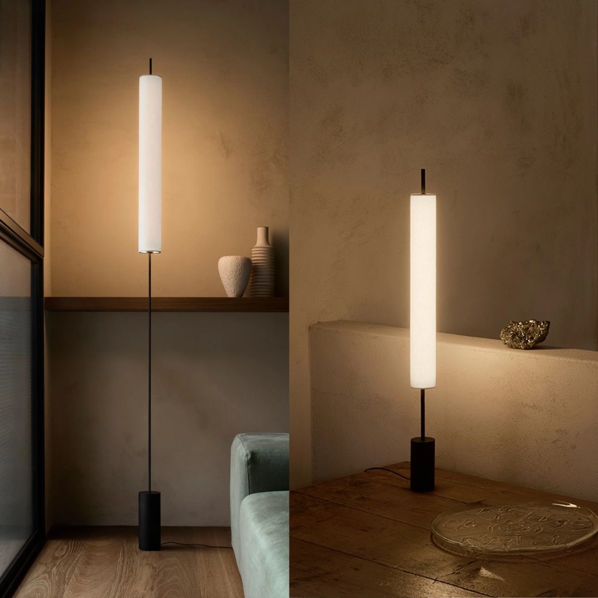 Egy karcsú fémszerkezetből áll: egy hengeres alapból és egy vékony szárból áll, amelyben egy LED-es fényforrás található, amivel 360°-ban szórja szét a fényt. 100% pamutpapírból készült diffúzor egészíti ki a kifinomult szövésű hatás érdekében, tovább hangsúlyozva Hono elegáns alakját.